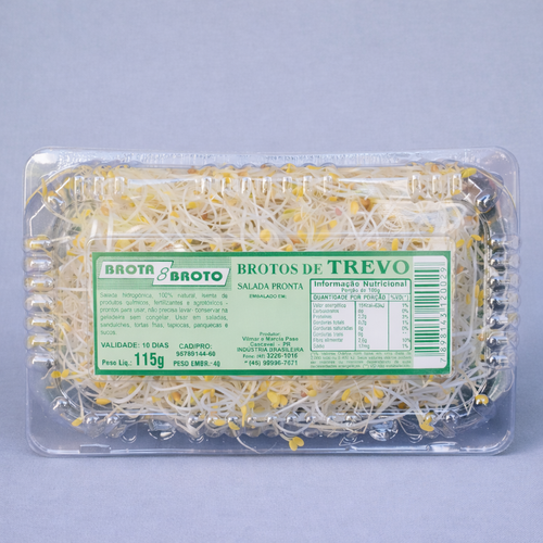 Atualmente a Brota Broto se dedica a produção de brotos de alfafa, trevo crimson, feijão moyashi e feno grego.